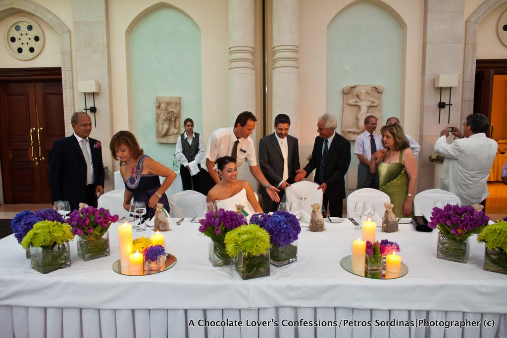 I was hoping to be able to show you guys a video of our entrance, but that requires Mr. Milk's help, and unfortunately the poor guy is so busy with work he hasn't even had the chance to do any of the editing he wanted to for the wedding footage. So as soon as he has the time, I will come back with some video footage. In the meantime, here are some of the pics of our entrance and cake cutting.